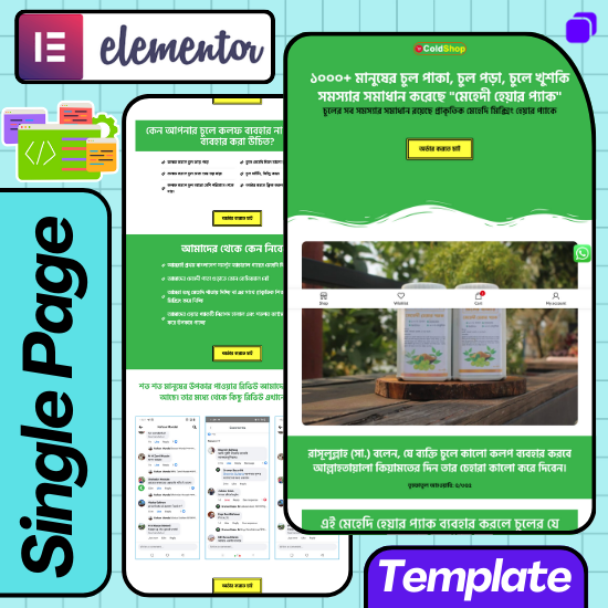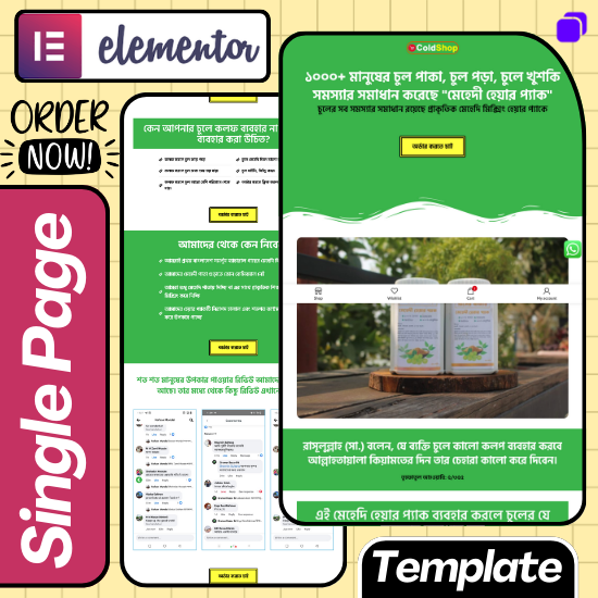 A powerful, sales-driven Elementor landing page template designed for selling Mehendi / Henna Hair Pack, Herbal Hair Care Products, and Natural Beauty Products.